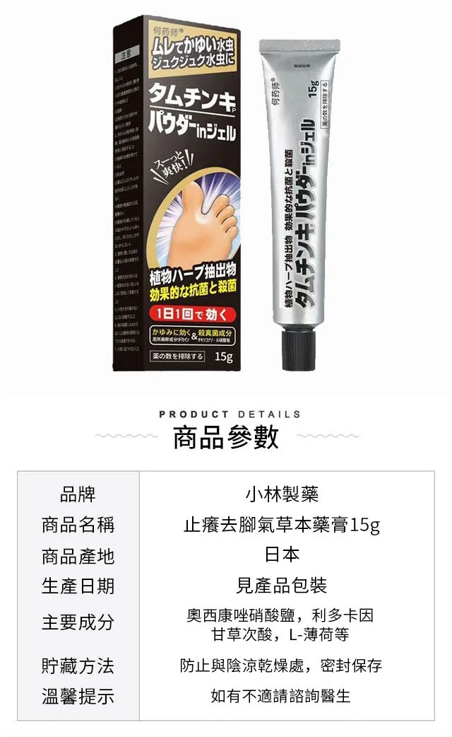 【日本山口研究所博士研發】推薦小林製藥止癢去腳氣草本藥膏,日本進口腳氣克星,去腳臭膏、植物頸環配方,0刺激無激素,治療腳癢脫皮爛腳丫等各種皮膚瘙癢!日本小林腳氣膏不僅解決很多足部問題,還能有效殺菌抗菌,有傷口也可以幫治愈合。